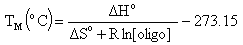 K-1mole-1), [oligo] is the molar concentration of an oligonucleotide, and the constant of -273.15 converts temperature from Kelvin to degrees of Celsius. The most accurate, nearest-neighbor parameters were obtained from the following publications for DNA/DNA base pairs
