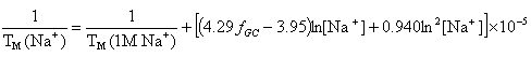 ) is calculated from the following equation (Owczarzy,R. Biophys. Chem., 117, 207-215),