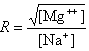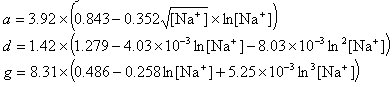 If R < 0.22, the monovalent ion correction is employed otherwise the divalent correction is used, including the case when [Na+] is zero. If R value is in the range from 0.22 to 6.0, the divalent ion correction is applied using a, d, and g coefficients that varies with Na+ concentration. These coefficients are constant for higher values of R (the second column of the following table).