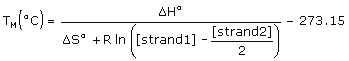 S° (entropy) are the melting parameters calculated from the sequence and the published nearest neighbor thermodynamic parameters, R is the ideal gas constant (1.987 cal